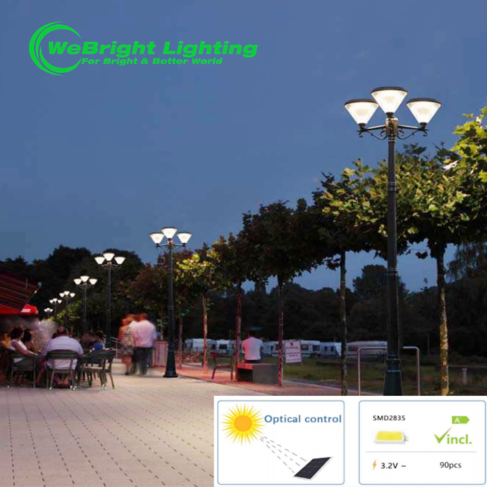 1. Integrated Design 2. Lithium Battery 3. Mono Solar Panel 4. Optical Control