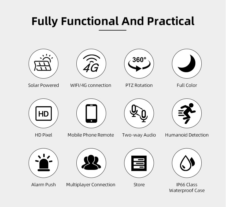 II) Combined with mono solar panel, long-life lithium battery, it is much easier to install and provide 360° panoramic monitoring, day-night and full-color.
